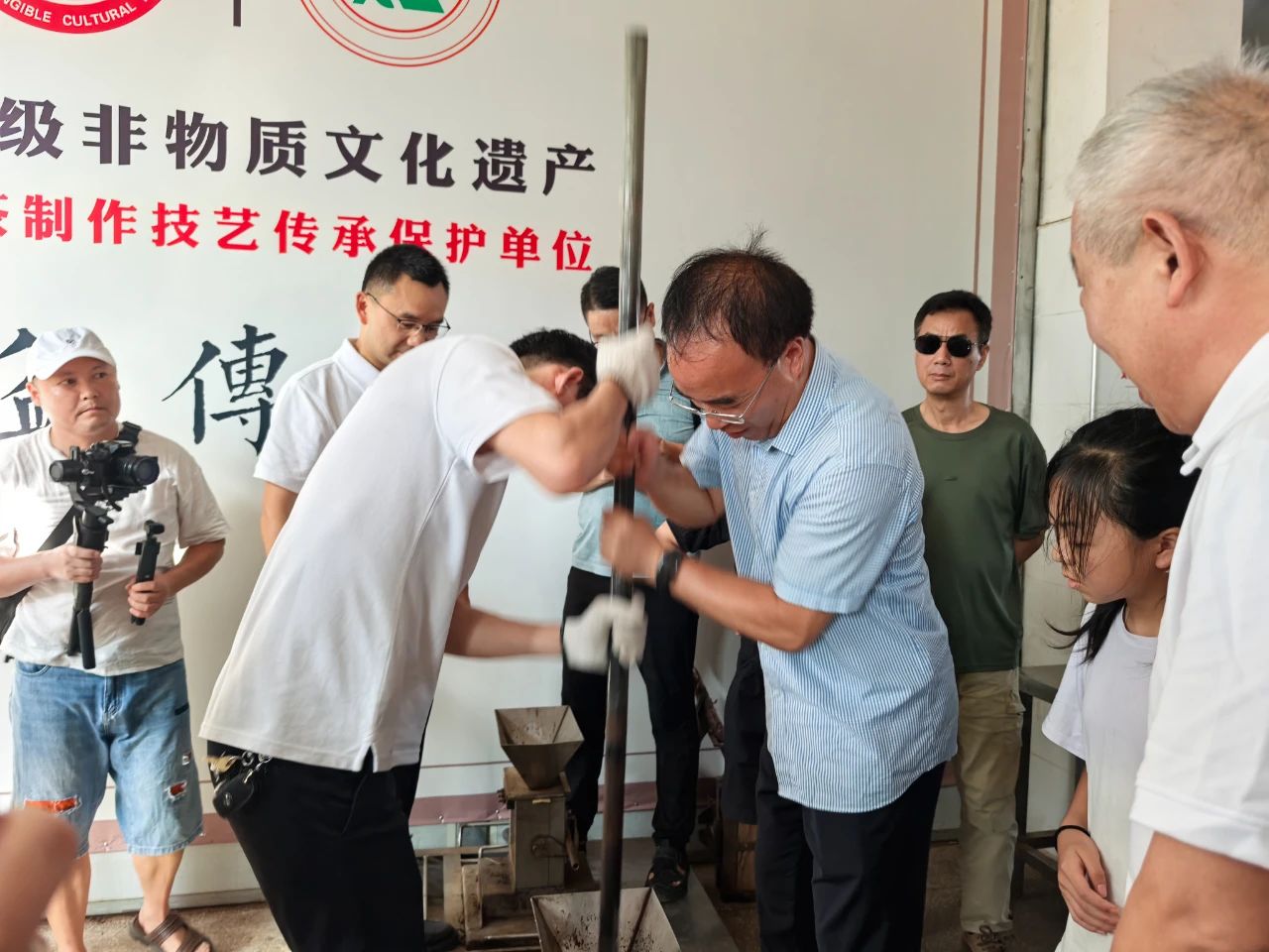 7月13日,活動(dòng)采風(fēng)團(tuán)到訪益陽(yáng)茶廠有限公司。益陽(yáng)茶廠是重要的黑茶生產(chǎn)企業(yè),中國(guó)第一片機(jī)壓茯磚茶誕生于此。