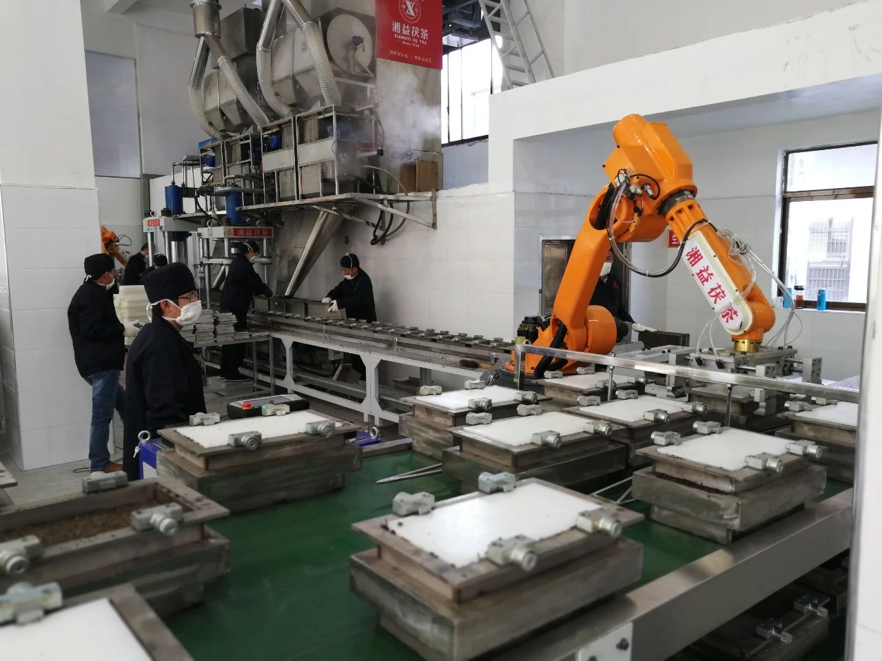 采風(fēng)團(tuán)參觀了萬噸原料儲(chǔ)備庫(kù)——該國(guó)家級(jí)儲(chǔ)備庫(kù)保障了邊銷茶對(duì)西北地區(qū)的穩(wěn)定供應(yīng);在湘益?zhèn)髁?xí)所,國(guó)家級(jí)非遺茯磚茶制作技藝代表性傳承人劉杏益展示了傳統(tǒng)的手筑工藝;探訪了核心工藝環(huán)節(jié)“金花酵庫(kù)”,這里為茯茶標(biāo)志性的“金花”提供了穩(wěn)定的發(fā)酵環(huán)境;在智能化生產(chǎn)車間,了解了茯磚茶4.0智能化生產(chǎn)線的運(yùn)作。