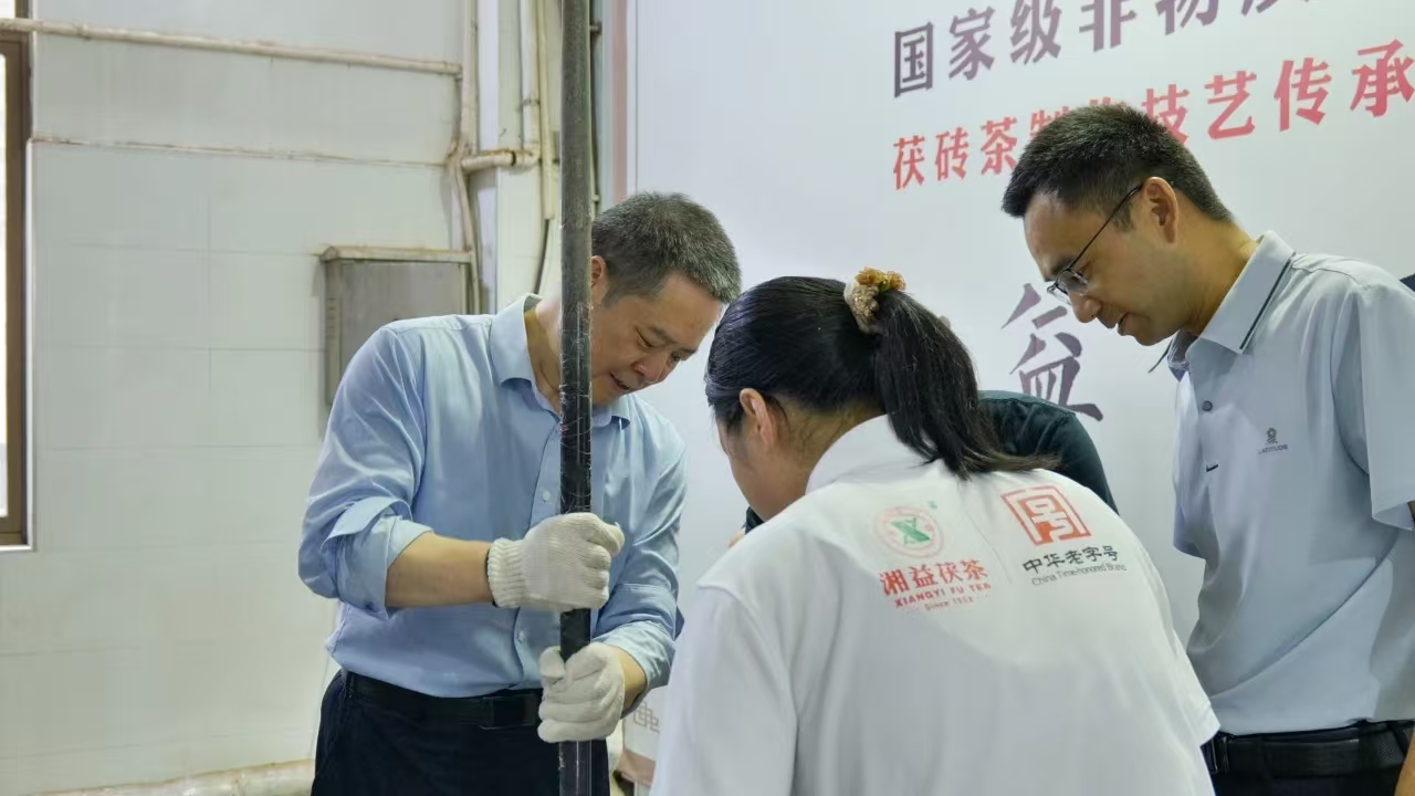 5 月 20 日,益陽市茶葉學(xué)會(huì)組織的2025年茶葉精深加工體驗(yàn)系列活動(dòng)在益陽茶廠有限公司隆重舉行,本次活動(dòng)以“非遺傳承?手筑茯香” 為主題。作為國家級(jí)非遺茯磚茶制作技藝唯一傳承保護(hù)單位,益陽茶廠以沉浸式非遺體驗(yàn)為核心,特邀國家級(jí)非遺傳承人劉杏益大師全程指導(dǎo),吸引了眾多愛茶人士深度參與。公司董事長彭雄根、總經(jīng)理余智勇、黨委書記兼常務(wù)副總經(jīng)理徐迪軍、副總經(jīng)理郝建等領(lǐng)導(dǎo)出席活動(dòng),與來賓共襄非遺文化傳承盛舉。